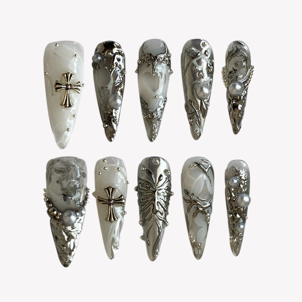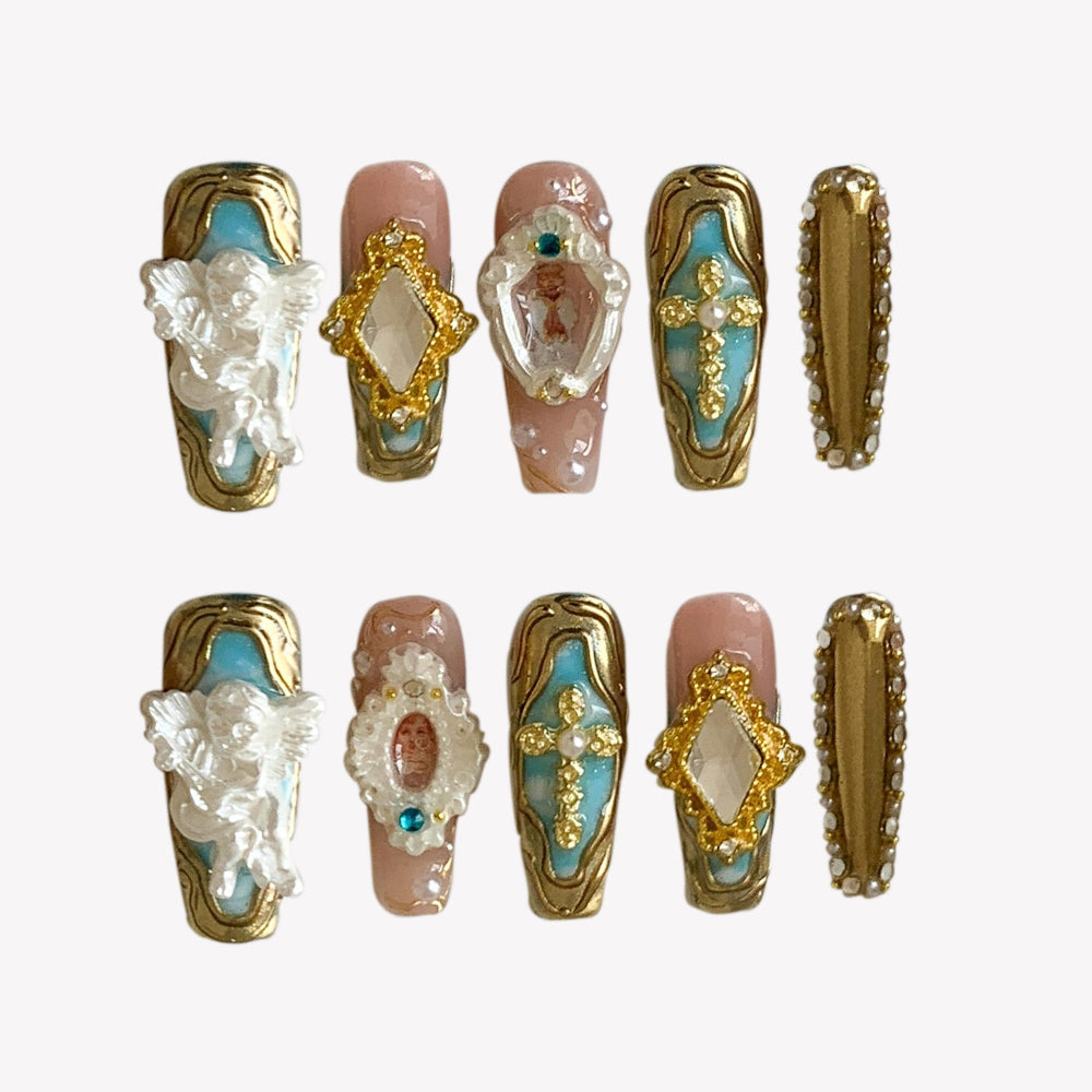 Salon-quality long press-on nails. Durable, damage-free, and easy application. Achieve the trending...